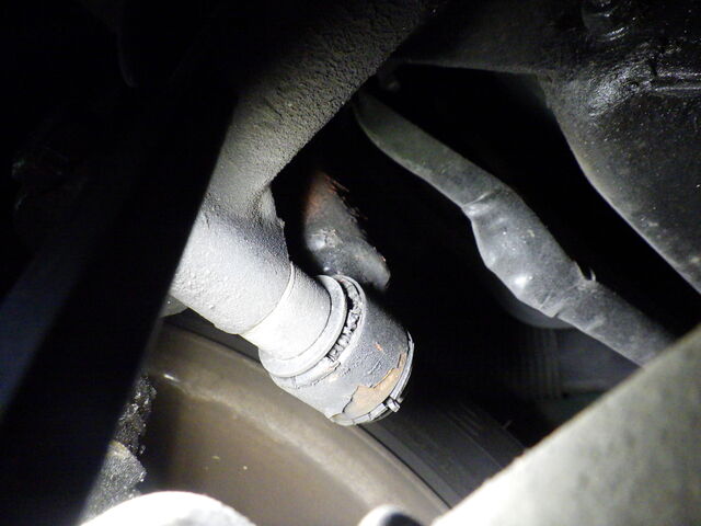 先ほどのヒーターバルブからの漏れが下まで来ています。