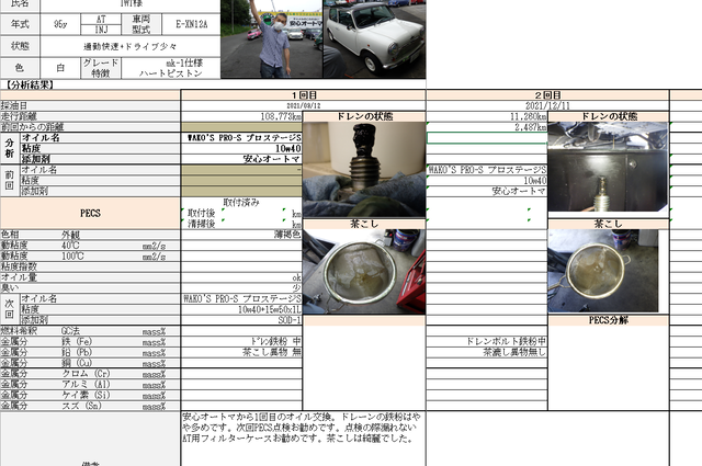 オイル量は問題無し、ガソリン臭は並程度でした。