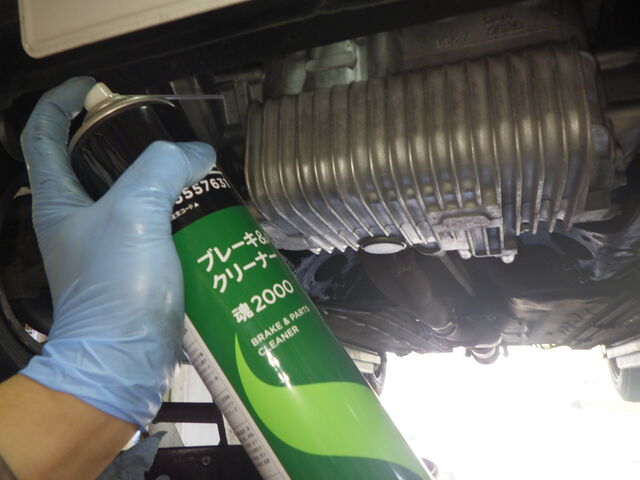 下から覗いてみると、ブレーキフルードが漏れたあとがありました。
