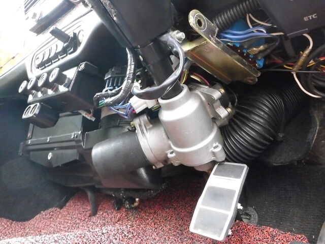 国産の軽自動車用を流用した電動パワステが付いてます。