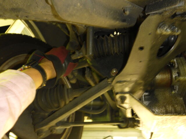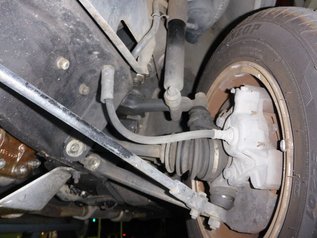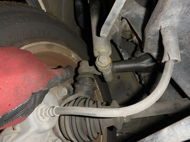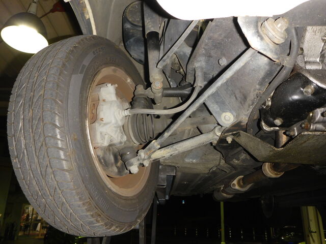左のタイロッドを上下に揺らすとゴトゴト・・先ほどの走行テストで感じた大きなガタはコレですね