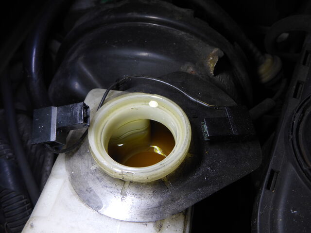 ブレーキフルードは酸化で変色してるのと、量も少し少ないです。