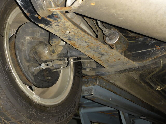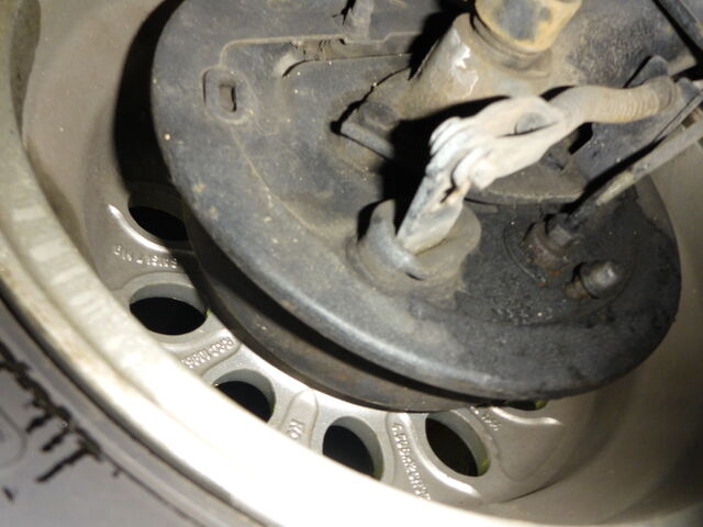 それと手前に見えるブレーキホースにもヒビあります。まだフルードが漏れてくることはないですがいずれ交換も予定しておいてください。