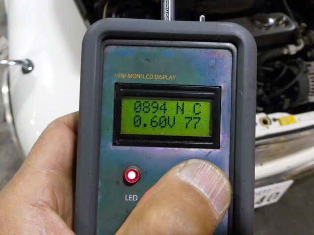 左下から 0.60vはスロポジ電圧 『77』はスロットルバルブを動かすステッパーモーターのステップ値