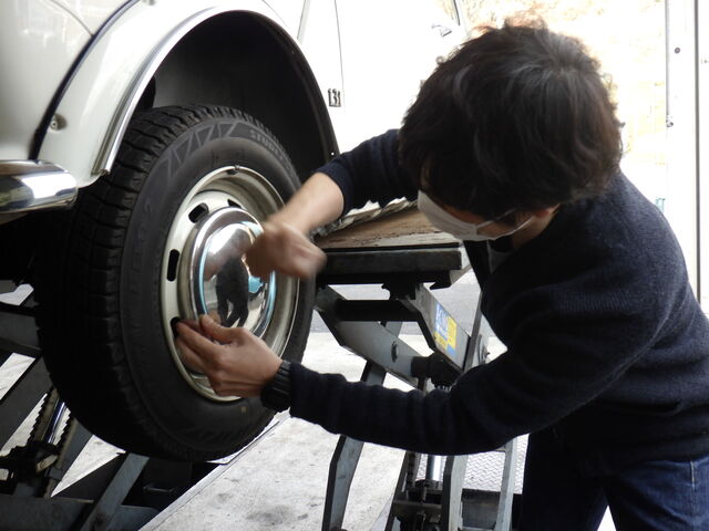 ホイールキャップ取付。