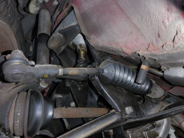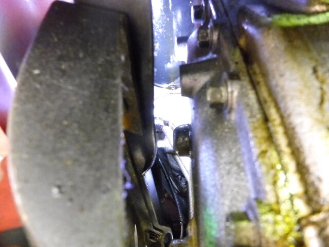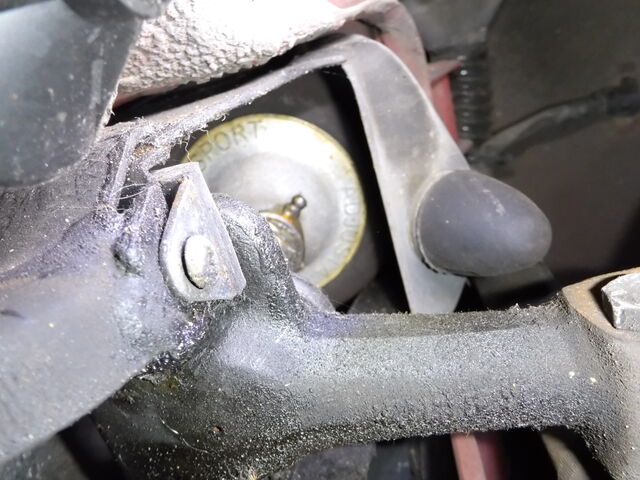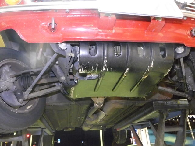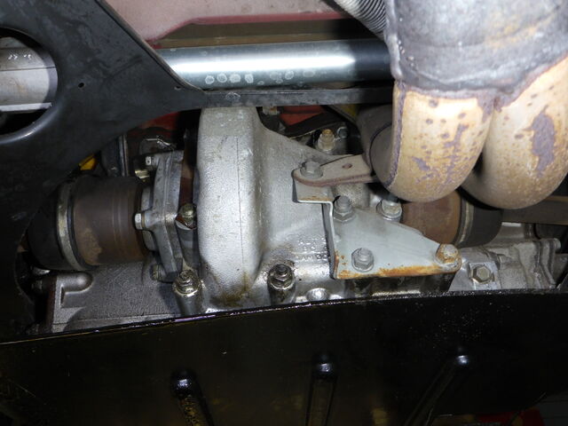 フロントサブフレームとオートマミッションの隙間から上を覗くと・・