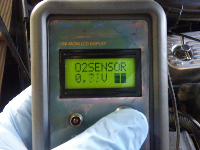 O2センサーの電圧およびその状態を表示。アイドリング時は0.4V以下(リーン)~0.6V以上(リッチ)を常に上下しています。