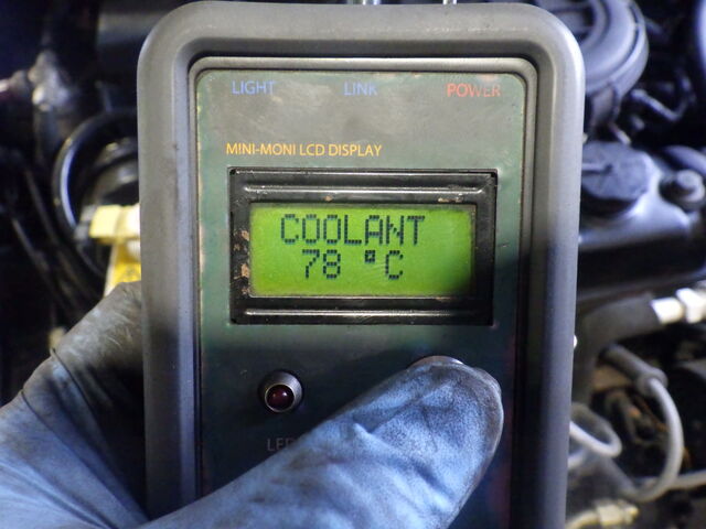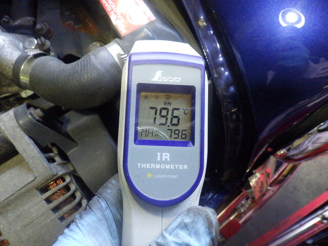 非接触の温度計で計ってラジエーターアッパータンクが79.6℃