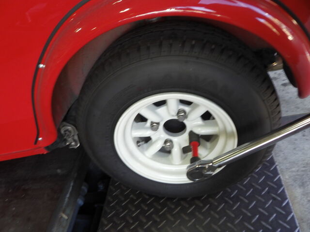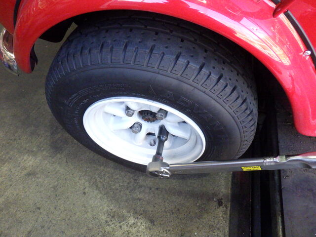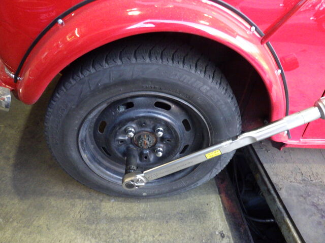 着地をしたら忘れないうちにタイヤをトルクレンチで締め付けます。