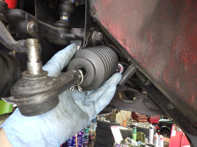 タイロッドと一緒にラックブーツも新しいものを装着しました。