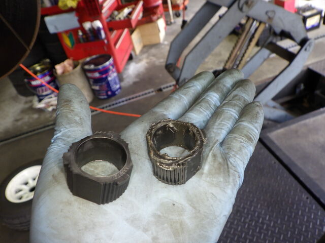 はずしたナイロンベアリングは形は崩れていませんが痩せてしまったようです。