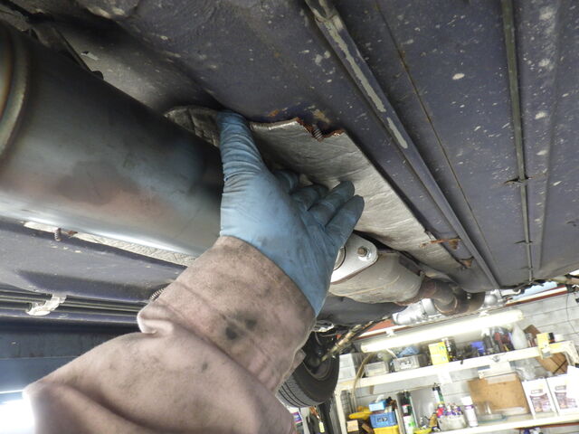マフラーの遮熱板は四方割れてしまっていたのでテープで補強してつけておきます。