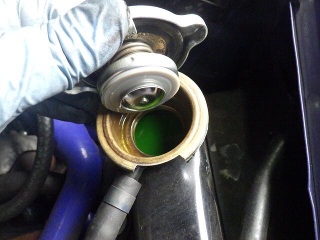 ラジエーターホースやラジエーター本体・サーモハウジングなどLLCの漏れた跡はありませんでした。