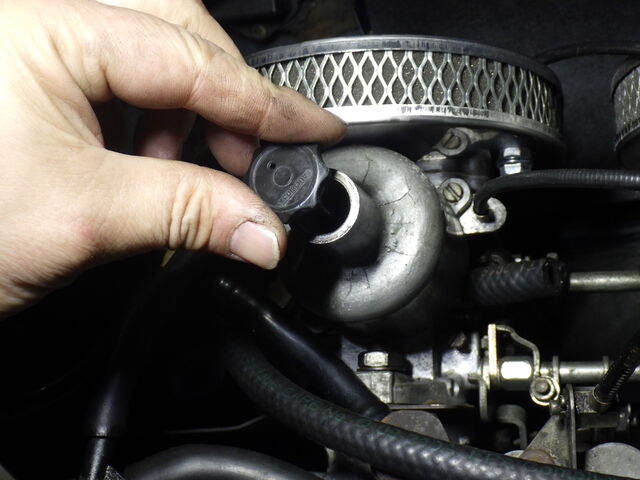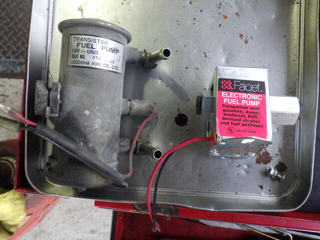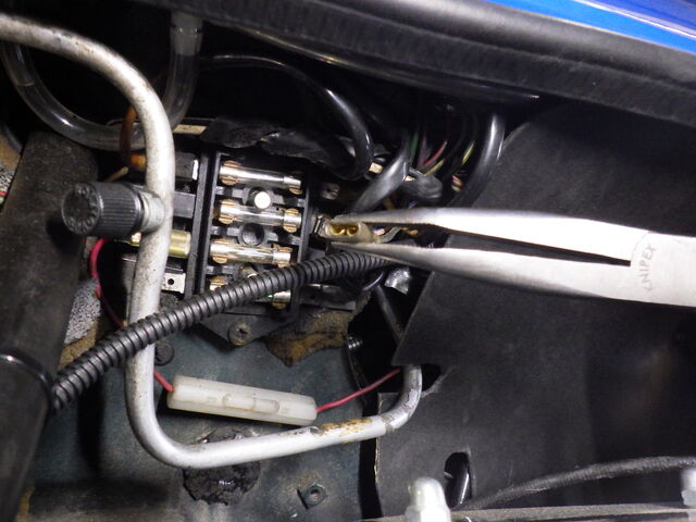 配線を戻してイグニッションON。無事、電磁ポンプが動き始めエンジンが始動しました。