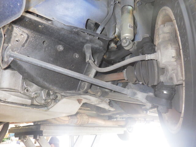 リフトアップして下回りの点検。ブーツの破れなどはなさそうです。