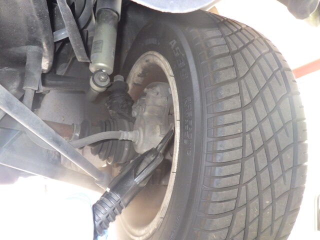 左側のタイロットかナイロンベアリングにガタがあり揺するとコトコトと音がします。まだガタはそこまで大きくなさそうなので気になるようでしたら交換おすすめです。