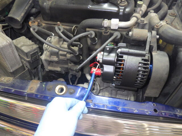 簡易アースとプラスチャージラインをオルタネーター側に装着しました。