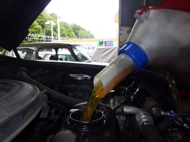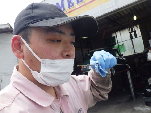 追加でオイル交換も承りました作業完了までもう少々お待ちください。