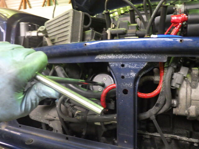 もしかしたらアース不良なのかもしれません。エンジンブロックとバッテリーのマイナスをバイパスしてみます。