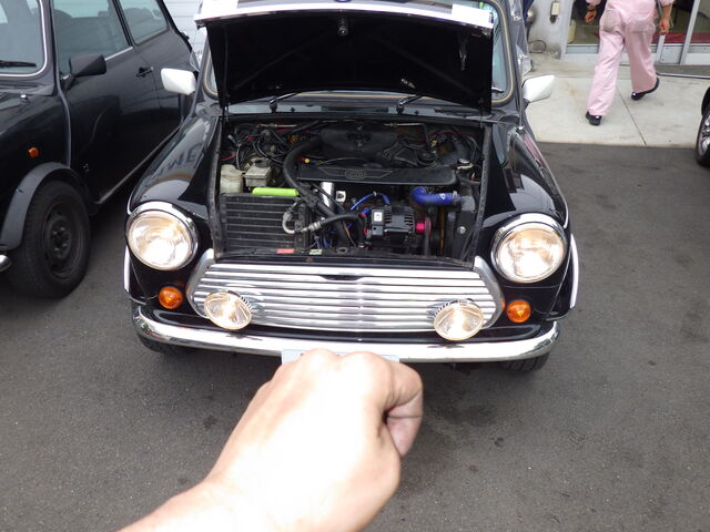 フロントパイプから先のエキゾーストがないため爆音を轟かせながらピットに到着。