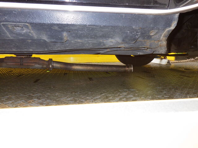 車体下を覗いてみると、、、 フロントパイプの部分から脱落してしまったようです。