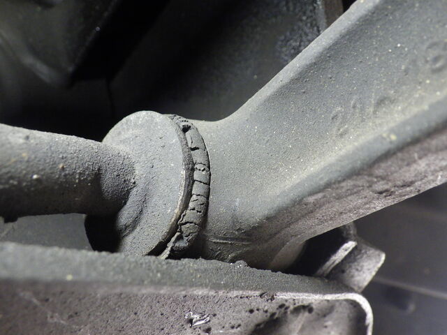 マフラーミドルの吊りゴムはクラックがやや成長。
