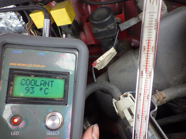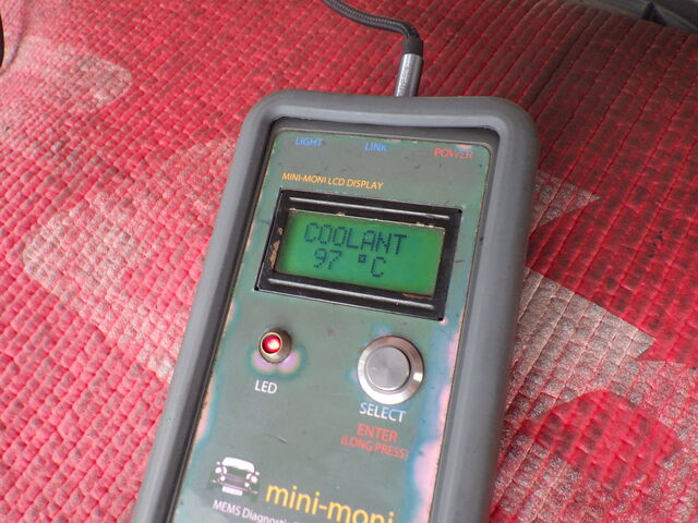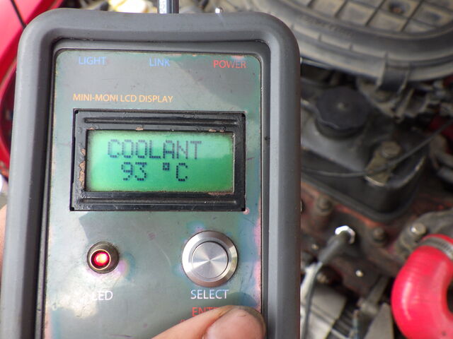 水温センサーは、97度表示で電動ファンが回り始めました。