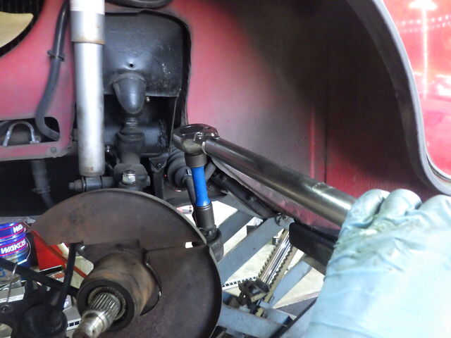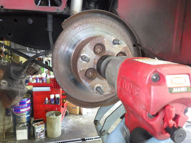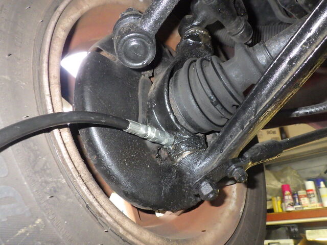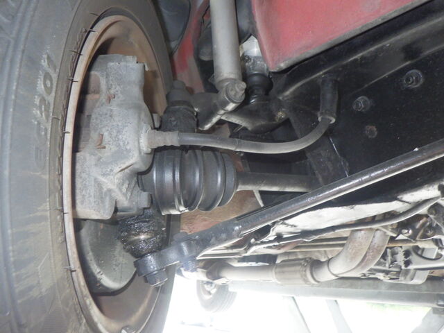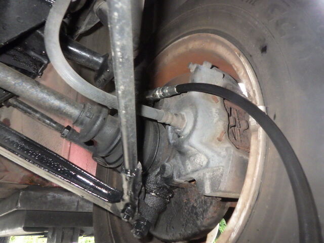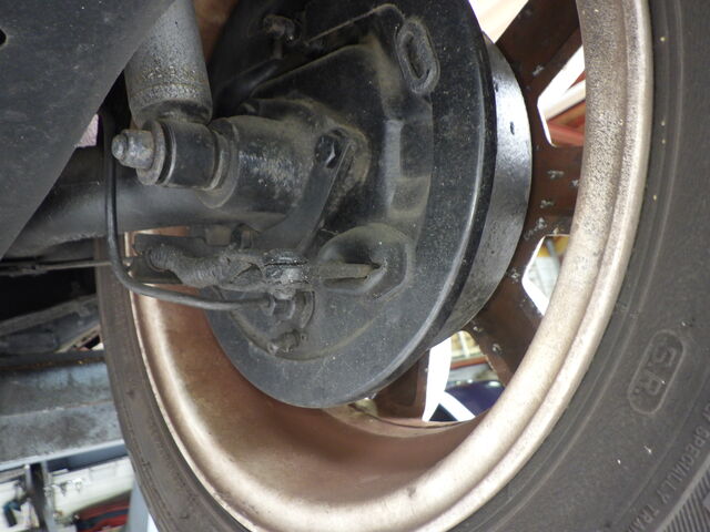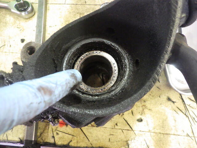 続いては、右前輪のスイベルハブを外してハブベアリングを交換していきます。