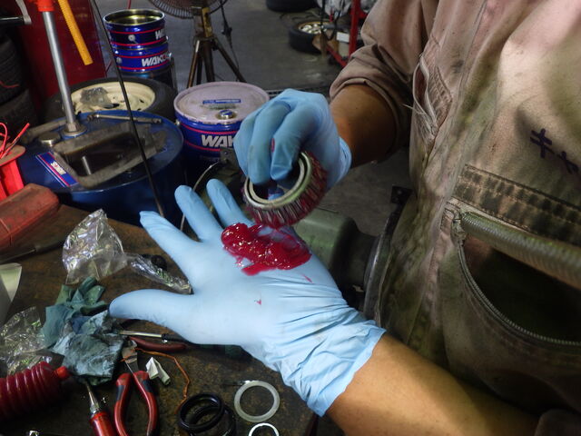 綺麗にしてから、新しいグリスをたっぷり入れて組みなおしていきます。