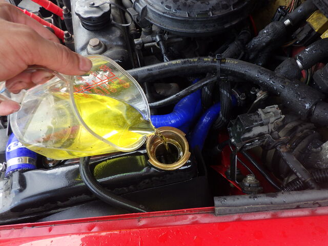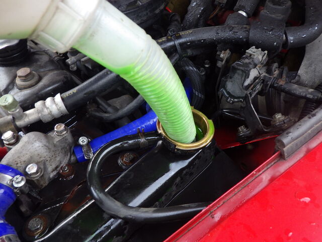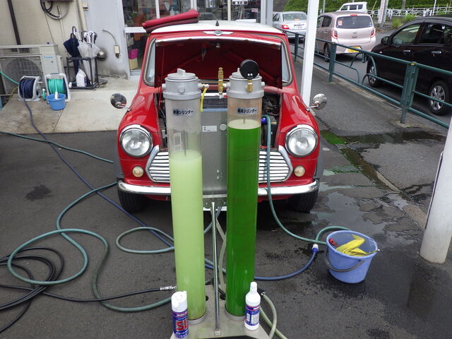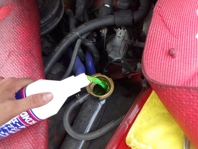 ラジエーター洗浄剤を入れて、点検からしていきます。