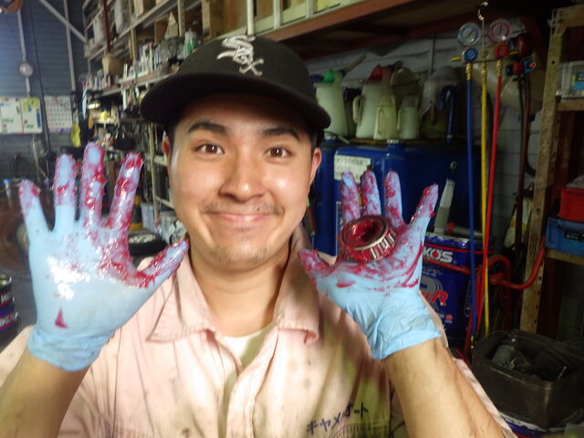 その後は、丁寧に笑顔で優しくグリスを中まで入れ込みました。