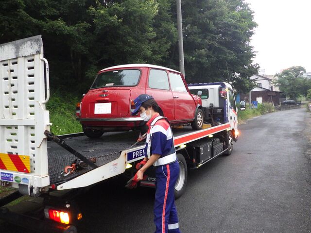 レッカーでミニだけご来店です(´;ω;`)ウゥゥ