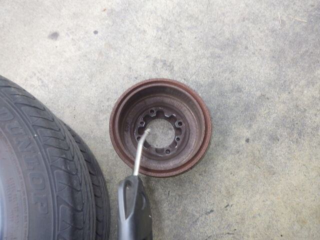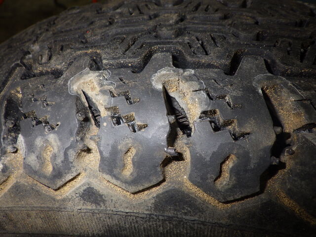 スペアタイヤは、完全に割れてしまって中のワイヤーが見えてしまっています。