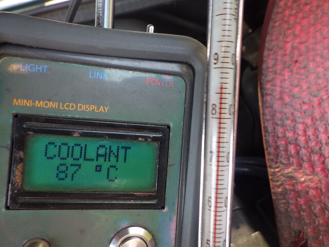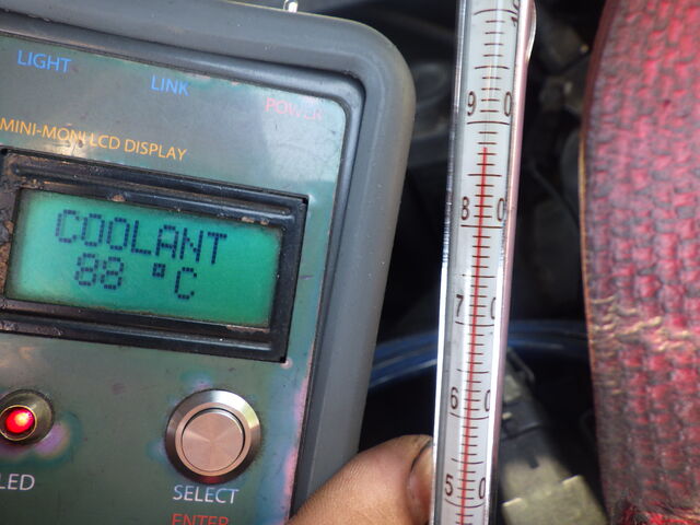 続いて、88度でサーモが全開になり冷却水が流れ込んできました。