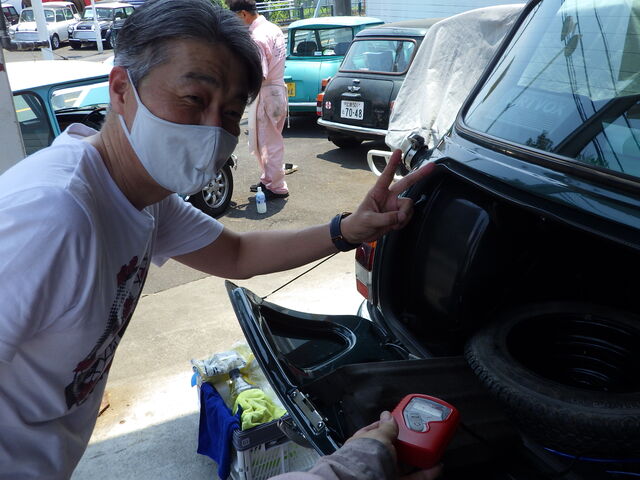 「今回は車検さー♪ それにしても暑ーい!」