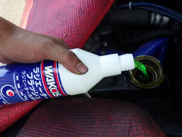 ラジエーター洗浄剤を入れて、点検していきます。