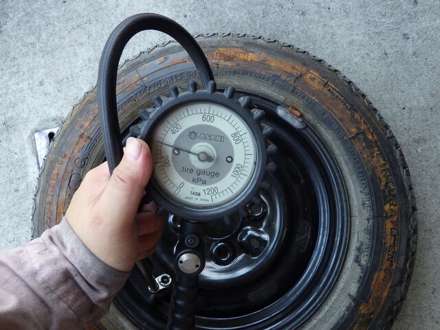 スペアタイヤは300kpa入れておきます。