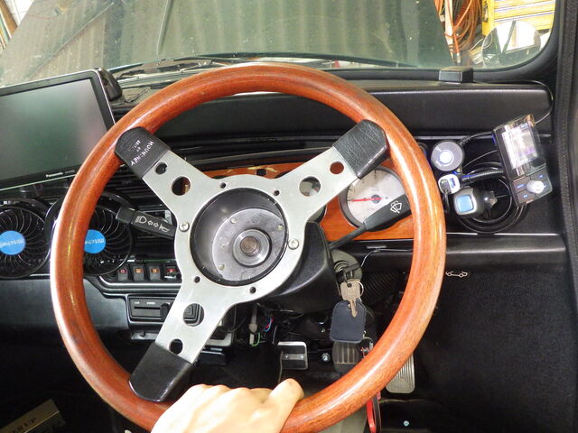 ステアリングも若干左向いているのでこちらもまっすぐにします^^
