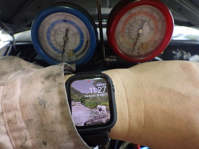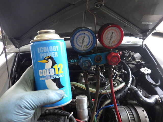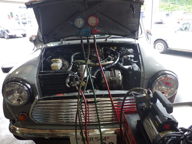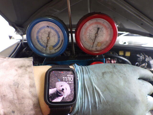 コンプレッサーonでもアイドリングするようになったので真空引き。