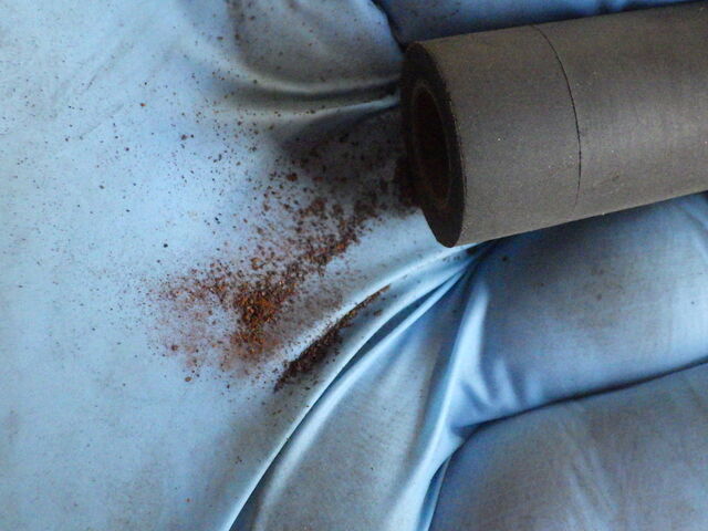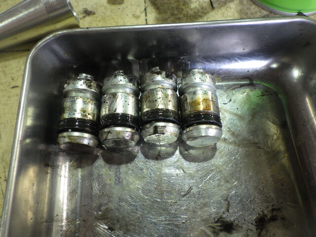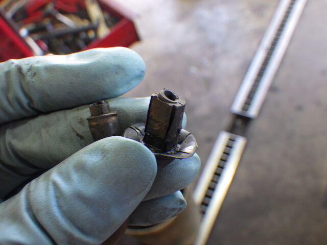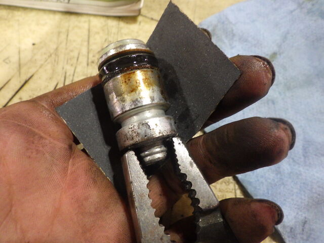 取り外したピストンは、錆などがついているのでペーパーを当てておきます。