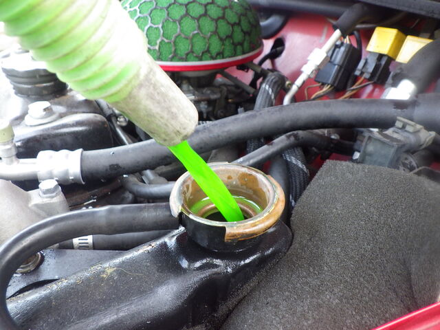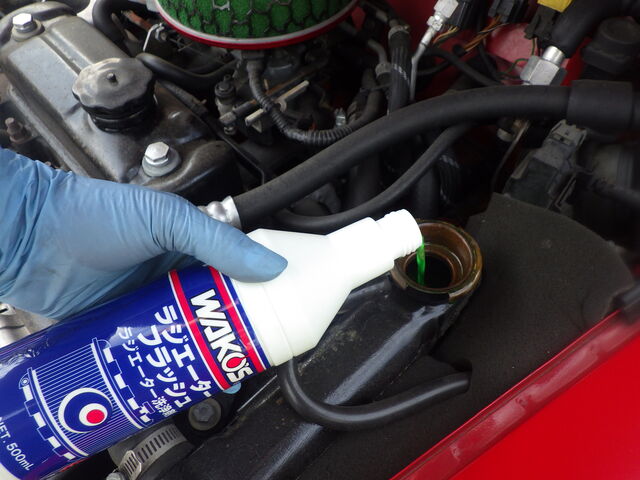 水路洗浄後は、クーラントブースターとLLCを入れていきます。
