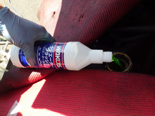 ラジエーター洗浄剤を入れて、各種点検をしていきます。