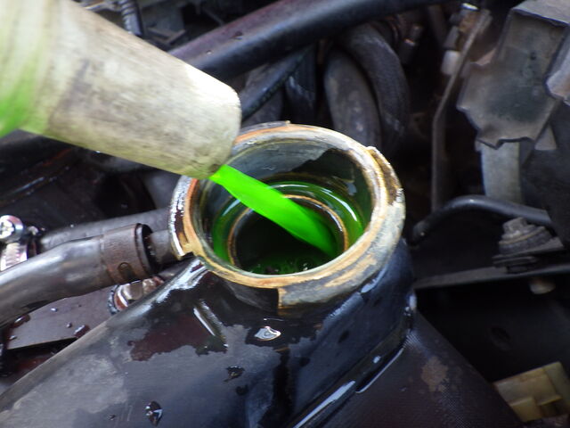 水路洗浄後は、消泡作用などがあるクーラントブースターとLLCを