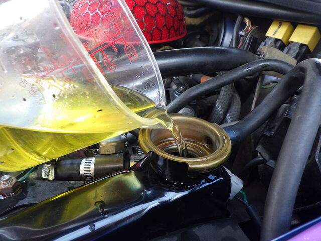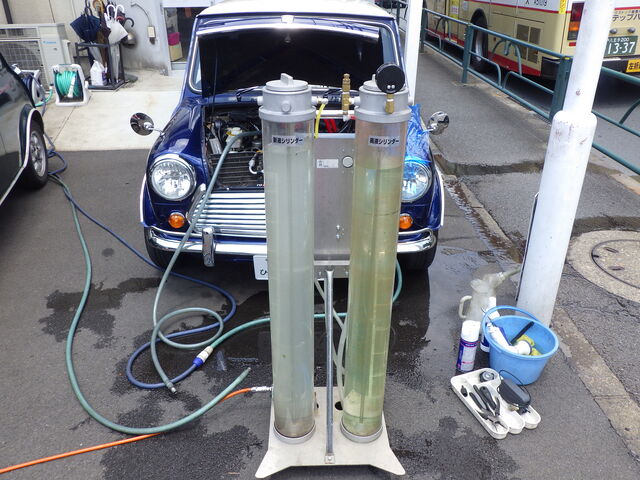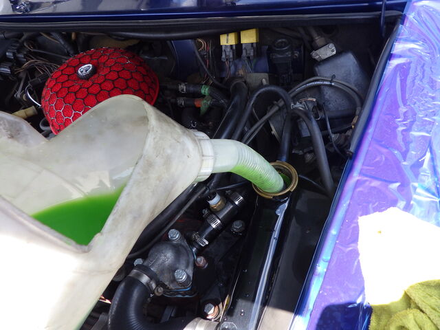 水路洗浄の後は、消泡作用のあるクーラントブースターとLLCを入れていきます。
