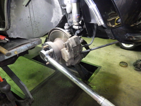足回りを分解しブーツの切れてしまったドライブシャフトを取り外し。