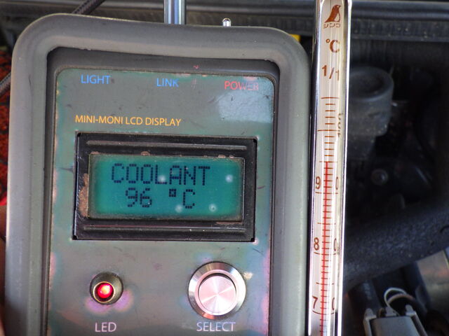 再度電動ファンの動作チェック。96℃でオンオフを繰り返しています。電動ファンの動作もOKです。