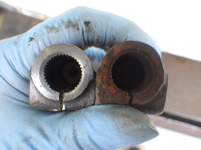 抜いたシャフトと新しいシャフトを見比べてみると、スプラインの溝の