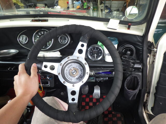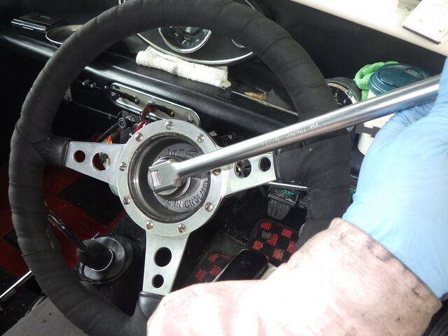 早速、ステアリングを外してシャフト交換をしていきます。