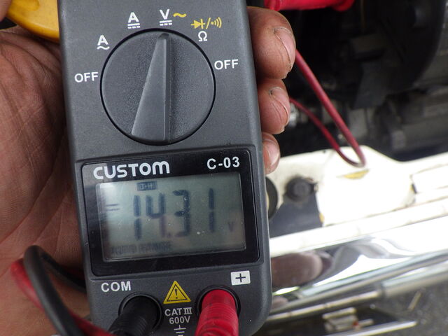 測定してみると、14.31Vで元気いっぱい発電しています。