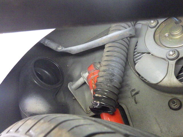 右フェンダー内のダクトが外れています。
